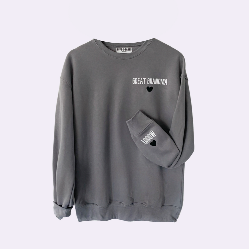 7. LOVE ON THE CUFF ♡ customizable static gray sweatshirt with personalized cuff