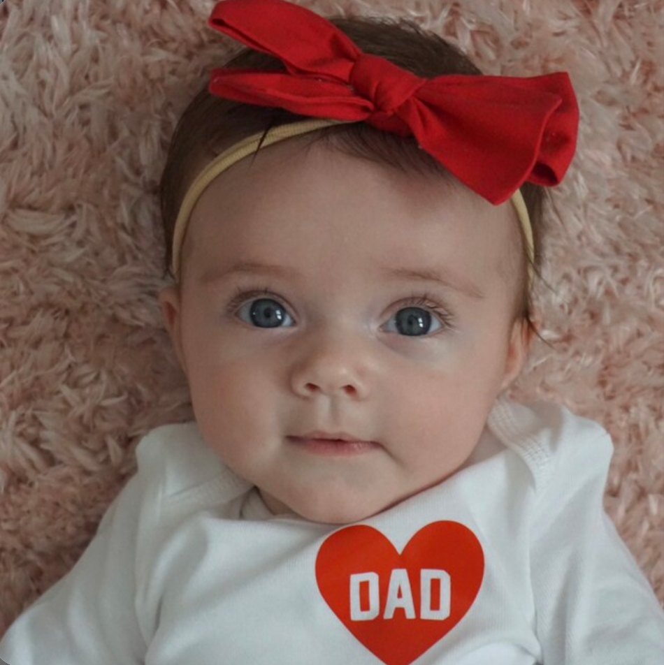 A customizable baby bodysuit. A soft cotton baby bodysuit with a red vinyl heart, personalized especially for your little one! A perfect Valentine's Day outfit for your little one.