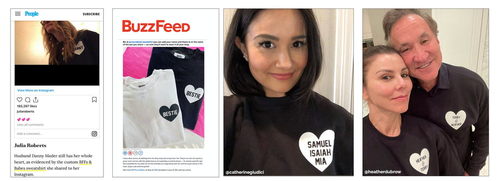This BFFS & BABES original is a best seller & makes a perfect gift for all mamas, pet moms, best friends, lovers ;) & more! As seen on some of your favorite celebrities including Julia Roberts, Catherine Giudici Lowe & more. All celebrities in the photos are wearing authentic BFFS & BABES.